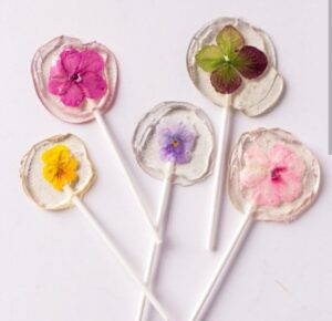 Delicados pétalos de flores naturales cubiertos con caramelo. Un toque gourmet, artesanal y sostenible para postres y experiencias únicas